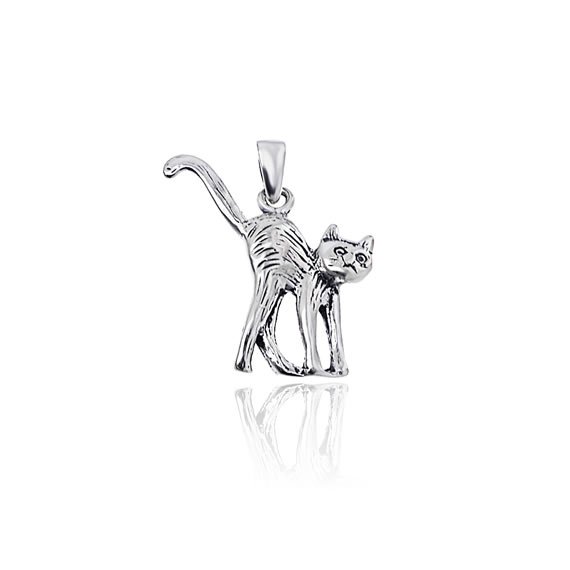 Wisiorek wykonany został w całości z wysokiej jakości srebra próby 925. Kotek mierzy 2,5cm długości, 2,3cm szerokości i ok. 2mm grubości. Całkowita waga wisiorka wynosi 2,1g.