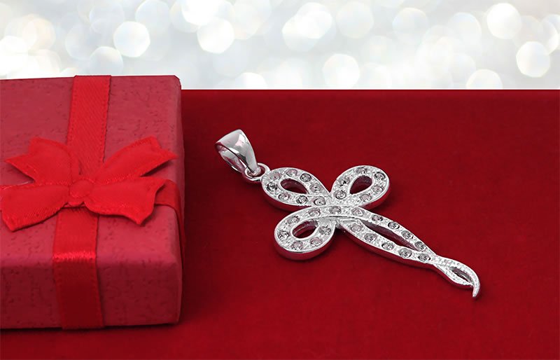 Wisiorek wykonany ze srebra próby 925, ozdobiony licznymi – w sumie 30 białymi, pięknie mieniącymi się kamykami. Poszczególny kamyczek o średnicy 1,5 mm.