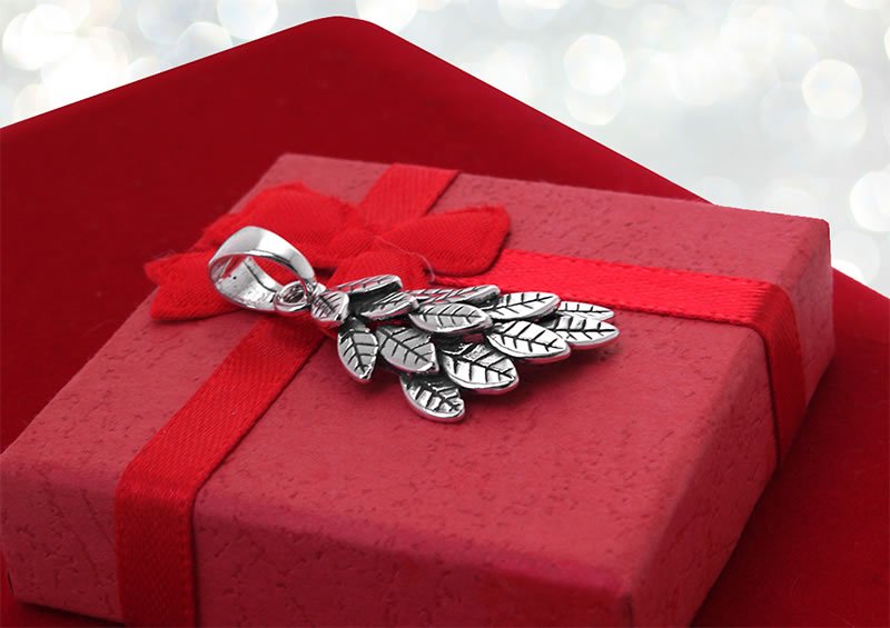 Wykonany został w całości z wysokiej jakości oksydowanego srebra próby 925.