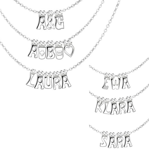 Dzięki zamocowanym do literki dwóm sztywnym przywieszkom wisiorki nie grupują się w jedno miejsce na łańcuszku, ale pięknie się układają tworząc słowo.