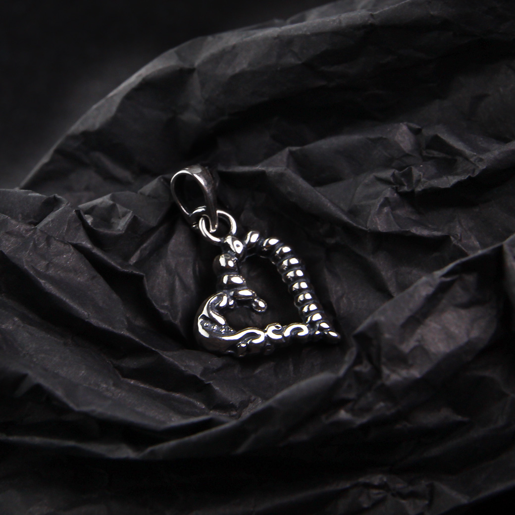 Wisiorek wykonany w całości z oksydowanego srebra próby 925.