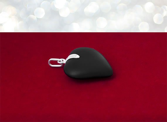 Piękny, dwustronny wisiorek w kształcie serca wykonany przy użyciu syntetycznego kamienia oraz srebra próby 925. Elementami srebrnymi jest zawieszka oraz mocowanie kamienia.