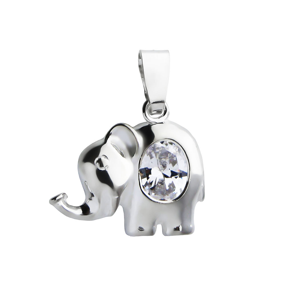 Piękny wisiorek w kształcie słonika, ozdobiony białą cyrkonią. Będzie doskonałym uzupełnieniem każdej stylizacji oraz świetnie sprawdza się w roli prezentu!