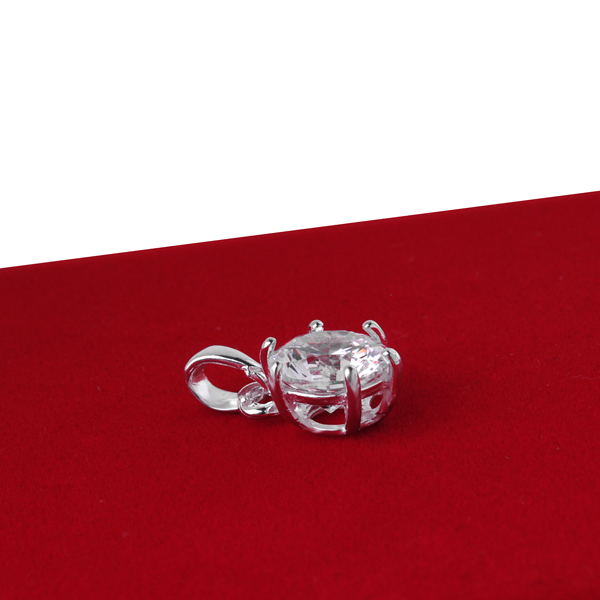 Wisiorek doskonale sprawdzi się na prezent dla wyjątkowej kobiety. Wykonany został z połączenia srebra próby 925 i błyszczącego kamienia. Delikatny i prosty kształt ozdobiony został białą, stożkową cyrkonią. Kamień o średnicy 10mm osadzony został w srebrnym koszyczku, zahaczony na 6 nóżkach. Długość wisiorka: 1,9cm, szerokość: 1,1cm, grubość: 7mm. Całkowita waga: 2,4g.