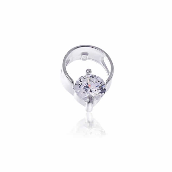 Bardzo kobiecy i elegancki wisiorek wykonany z połączenia srebra próby 925 i kamienia. Wisiorek ozdobiony został białą cyrkonią w kształcie walca o średnicy 11mm i grubości 5mm. Długość wisiorka: 1,6cm. Waga: 1,7g.