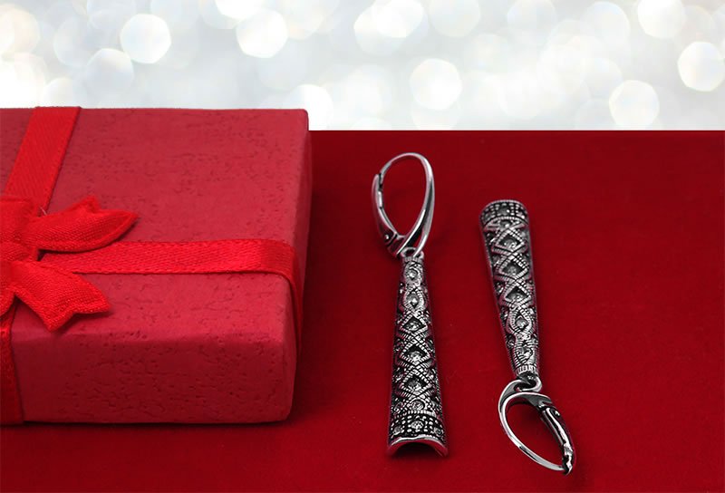 Kolczyki wykonane z oksydowanego srebra próby 925.