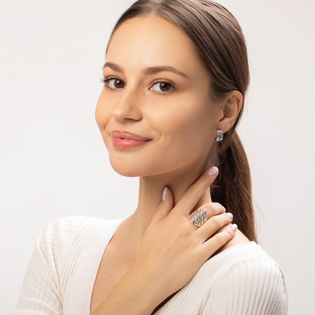 Pierścionek wykonany w całości ze srebra próby 925.