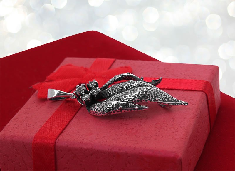 Wykonany został z wysokiej jakości oksydowanego srebra próby 925.