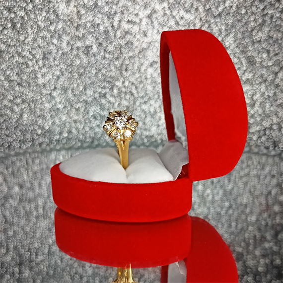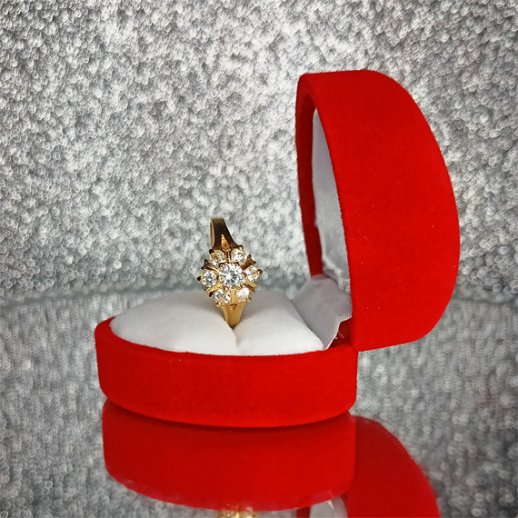 Pierścionek odlany jest z metalu szlachetnego – z 8-karatowego złota. Nie jest to produkt jedynie pokryty złoceniem. Pierścionek wykonywany jest w naszej odlewni oraz ręcznie obrabiany, aby spełniał najwyższe standardy.