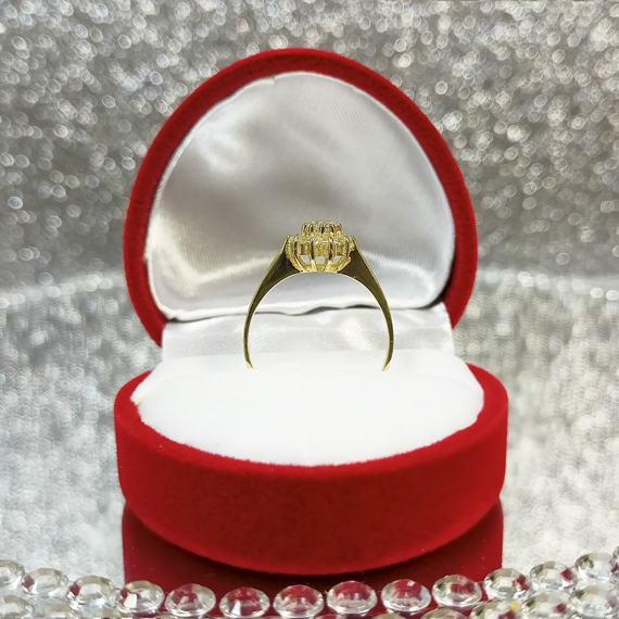 Pierścionek odlany jest z metalu szlachetnego – z 8-karatowego złota. Nie jest to produkt jedynie pokryty złoceniem. Pierścionek wykonywany jest w naszej odlewni oraz ręcznie obrabiany, aby spełniał najwyższe standardy.